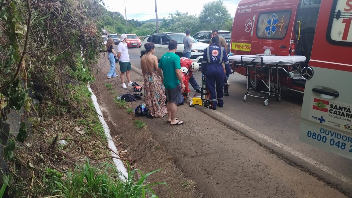 Com o impacto, o condutor da motocicleta sofreu ferimentos graves, incluindo fratura exposta em um dos braços. De acordo com os Bombeiros Voluntários de Concórdia e a equipe do Serviço de Atendimento Móvel de Urgência (SAMU), que atenderam a ocorrência, a vítima ficou inconsciente, sendo intubada, após a colisão e foi encaminhada pelo SAMU ao hospital para avaliação e atendimento médico especializado.