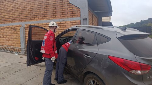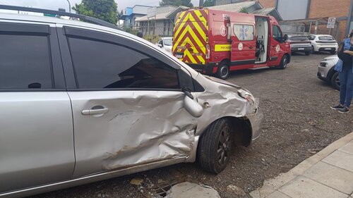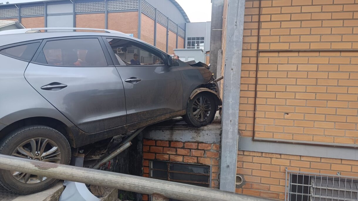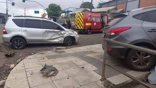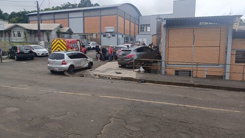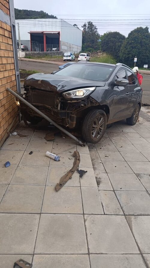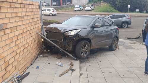 Após o impacto, a motorista do i30 se assustou e, ao invés de frear, acabou acelerando o veículo. Com isso, o carro subiu na calçada e colidiu contra a parede do centro comunitário do bairro Guilherme Reich, chamando a atenção de moradores e pessoas que passavam pelo local.